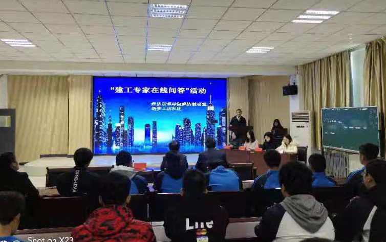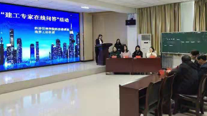 2018年11月8日下午,经济管理学院经济教研室联合造梦工坊社团举办的“建工专家在线问答”活动顺利举行。best365中国官方网站教学院长郭国庆、经济管理学院院长董笑予、建工专家、建工专业老师彭丽娟、张迎春等四位老师及17、18级所有建设工程管理和工程造价专业的所有同学参加了本次活动。