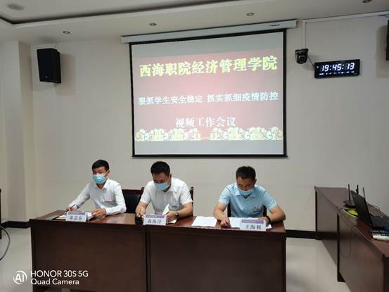 2020年6月17日晚19:40,经济管理学院在一号教学楼1519教室召开了2020年“狠抓学生安全稳定,抓实抓细疫情防控”视频工作会议。会议安排部署了疫情防控下学院下发的相关要求与流程,以及今后教育管理工作。院长尚海洋、副院长秦志春、学生科科长王海利出席了本次视频会议,best365全体师生百余人参加此次视频会议。参会人员全程佩戴口罩,分散就坐,严格遵守疫情防控规定。