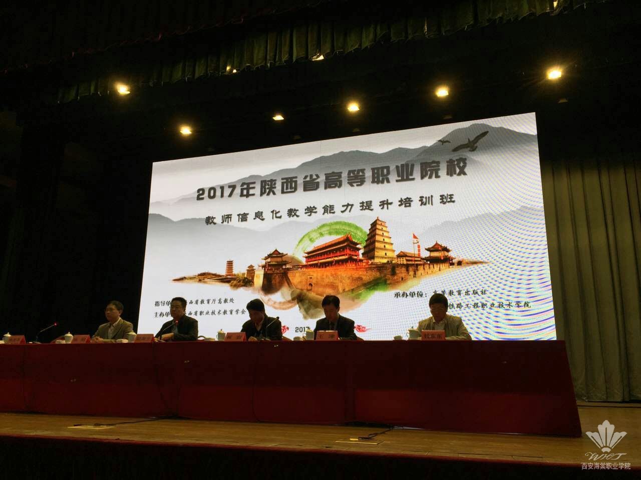 2017年4月22日(星期六)由职业学院教务处处长房宪俊带领一行人员,参加了由陕西省职业技术教育学会举办、陕西铁路工程职业学院、高等教育出版社联办的“2017年陕西省高等职业学校教师信息化教学能力提升培训班”。