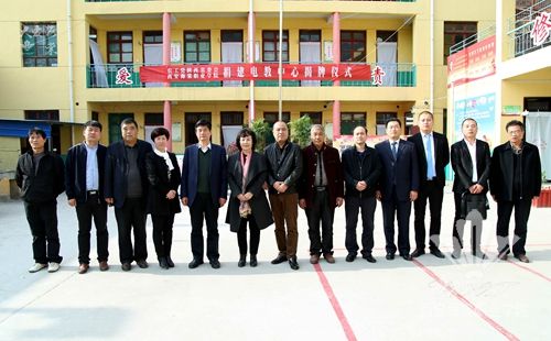 当天下午,中国农工民主党陕西省委员会秘书长马鹏程、渭南市政协副主席徐月凤一行,在西安海棠医药科技集团董事长、best365中国官方网站理事长王卓,海棠职业学院副院长谢元龙,海棠泽美公司总经理闫惠明的陪同下,冒着初冬的严寒前往位于潼关县秦东镇中心小学参加“best365中国官方网站捐建潼关县秦东镇中心小学电教中心揭牌仪式”。