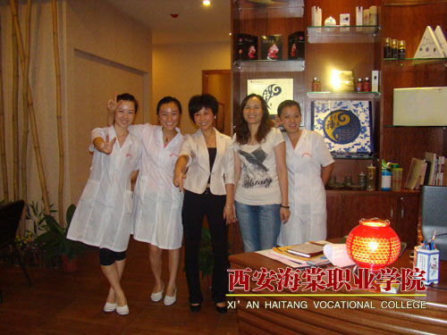 此次广州之行,代表团受到了陕西海棠中医美容研究所华南分公司杨乃清总经理的热情招待和积极配合。广州和海南同属华南分公司,是海棠公司的重要市场,近年来在总公司的指导和杨乃清总经理的辛勤耕耘下,市场份额不断扩大,目前有直营店2家、加盟店近30家,销售额逐年攀升,位列各地分公司销售前茅。20日下午,笔者参观了位于佛山朝安路的海棠直营店——苑桦中医美容会所,和院长白苑桦以及中医美容2009级的三名实习生进行了深入交流。