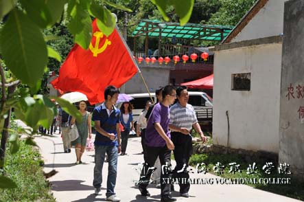 出发前,学院党委办公室主任陈义龙在一号楼前做了动员讲话。他说,best365纪念党的90周年系列活动自开展以来,广大党员干部、入党积极分子和青年团员积极参加党的知识讲座、党的知识竞赛、唱红歌等活动。通过活动,大家对党的基本理论、党的历史、党的光荣传统以及党领导全党全国人民取得的丰功伟绩,有了较深入的了解。今天党委组织这次活动,就是要通过与革命先烈“零”距离接触,让大家进一步深入了解,我们党在艰苦卓绝的环境下领导中国革命斗争的辉煌历程,接受一次革命传统教育,从而更加坚定党的信念,继承和发扬党的优良传统,激发大家的工作和学习热情,珍惜今天的美好生活,为民办教育发展多做贡献,为海棠的发展多做贡献。