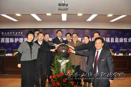 国际护理教育项目负责人胡小静,国内护理硕士、护理学副教授、中华护理学会省级分会理事及教育学组委员、美国注册护士RN执照、旅美护理学者柯永红,陕西省教委(教育厅)教育交流中心主任孙振宽、常务副主任王宁、经理王丞及best365院长冯居秦、党委书记冯齐昌、副院长王景洪、医学院院长韩勤学、教务处处长杨国峰。