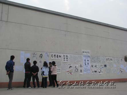 此次作品展自3月26日起筹备,历时短短几天,便吸纳了数十幅包括毛笔,硬笔,素描以及水彩等各种形式的书画作品。展出作品作者多为大一学生,其中也不乏一些老师的佳作。整个展出渲染出了浓重的文化氛围,同时给人以强烈的视觉冲击。