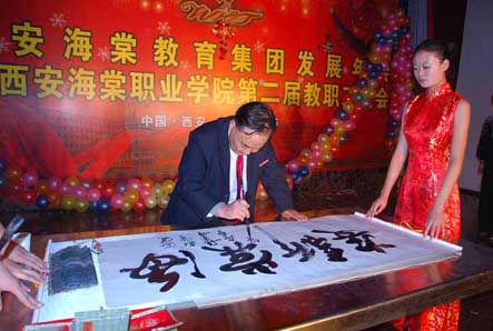 最后,学院董事、王卓先生作2011年西安海棠教育集团发展规划报告。首先,他带领所有教职员工回味了即将过去的2010年。在2010年,“两院一校”都经历了非常大的变化。我们在过去的2010年中,给外界再次证实了海棠的实力,海棠的发展潜力;再次夯实了自己未来发展的基础;再次向更高更远的目标发起了冲锋,向我们制定好的,从规模化发展,从内涵发展到实力发展走出了探索性的一步。王卓董事还对2010年感动自己的人和事表示感谢,并描绘了海棠教育集团未来发展的宏伟蓝图。