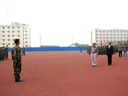 冯书记一行三人在军训团工作人员的陪同下来到训练场,一进训练场,军训团参谋长远远地跑过来,然后立正,敬礼,并代表军训团的学员及教官欢迎党委领导莅临指导工作。两位书记热情的同参谋长握手,并进行了亲切交谈。