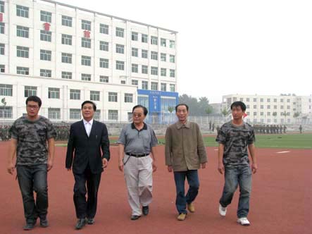8月的海棠到处洋溢着生机勃勃的景象,新生报到工作有序的进行着;而军训训练场则到处充满着紧张而又激烈的操练气息,处处涌动着军训学生的身影。2010年8月27日上午,党委书记冯齐昌、党委副书记王爱民、党办主任高峰一行三人前往训练场慰问2010级学生军训团。