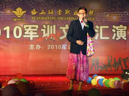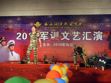 2010年8月30日晚7:30,学院2010年军训团文艺汇报演出在篮球场隆重举行。灯光霓红,流光溢彩的表演让海棠的夜晚充满了色彩和活力。