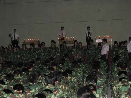 点蜡烛,脱帽致哀一分钟。为了8月8日凌晨那瞬间被冲毁的家园,为了8月8日凌晨那瞬间被夺走的1239条鲜活的生命,所有在场的学生泪湿脸庞,泪洒心底。