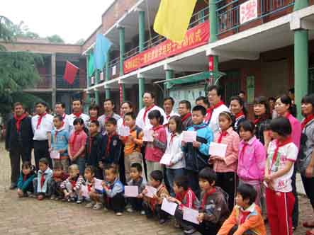 在“只要人人都献出一点爱,世界就会变成美好的明天......”的歌声中,各高校校长、单位领导把捐助款亲手交到22名贫困学生的手中;少先队员向各位校长、领导系上鲜艳的红领巾、致以崇高的少先队礼。