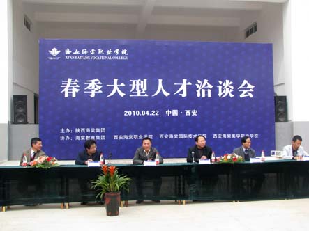 下午,由陕西海棠集团主办,best365中国官方网站、海棠国际技术学院、海棠美学职业学校协办的2010年春季大型人才洽谈会在三号教学楼室内运动场顺利召开。