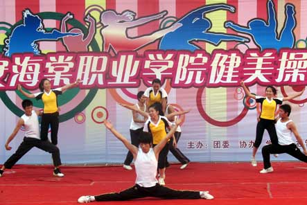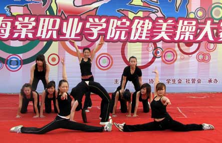 2010年5月11日16:30,由学院团委主办,社管会协办,健身协会承办的以“青春激扬,魅力海棠”为主题的健美操总决赛在学院三号教学楼中央广场顺利举行。副院长吕博、教育集团督导部部长葛升、宣传处处长谢元龙、学生处处长王文强,各二级学院院长、科长及拥有国家二级运动员称号的李巧梅、侯娇老师出席活动并担当活动评委,医疗美容技术专业0905班获冠军。