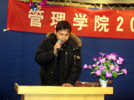 首先,副院长蒋国瑜做了重要讲话。他指出2009年对海棠来说是丰收的一年,对于管理学院,硕果累累,可喜可贺。希望大家能从获得奖励的优秀教师,优秀辅导员,优秀学生干部及三好学生身上学到东西,积极的争取先进。最后蒋院长预祝管理学院的发展更上一层楼。