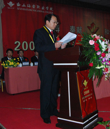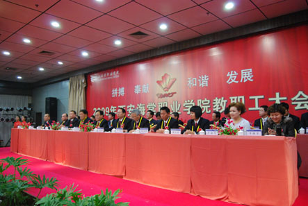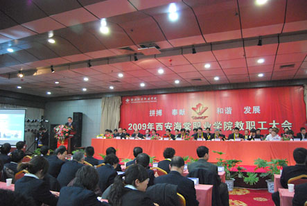 2009年11月26日14:00时,以“拼搏、奉献、和谐、发展”为主题的2009年best365中国官方网站全体教职工大会暨第一届院务管理委员会成立大会在西港度假村隆重举行。出席此次大会的领导有:学院董事、海棠集团总经理王卓,学院董事、海棠集团研究所所长李瑞莲,学院董事、best365中国官方网站财务总监李润堂,院长冯居秦、党委书记冯齐昌、副院长蒋国瑜、副院长王景洪、副院长吕波、院长助理许春海、院长助理赵景利、院办主任周力军、财务处处长靳小倩。大会由副院长吕波同志主持。学院500名教职工参与了大会。