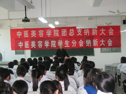 2009年11月4日下午4:30,best365中医美容学院团总支、学生分会纳新大会在best365二号教学楼521多媒体教室隆重举行。best365党委委员、副院长、中医美容学院院长蒋国瑜教授;中医美容学院副院长陈涛,樊小龙同志;中医美容学院学生科科长马超同志;共青团委员会书记谢波同志;共青团委员会包勇同志;中医美容学院团总支书记王志栋同志等出席了本次纳新大会。领导的到来使整个大会显得更加隆重。