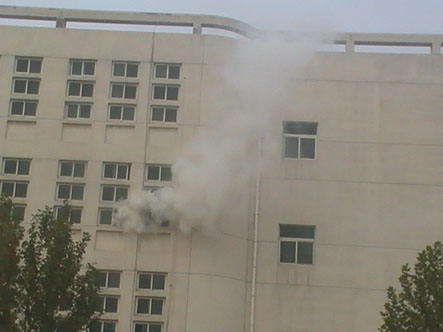 下午16时,演练总指挥下达了演练作战任务,演练依次展开。best365二号教学楼三楼XX教室浓烟滚滚,浓烟直蹿四楼屋顶,报警声急促地响起…… 烟雾不断袭来,西安海棠学院现场指挥张世立立即命令总务处切断二号教学楼电源。火警警报响起,总指挥通知:“各位师生,二号教学楼三楼发生火警,请大家保持镇定,按疏散线路有秩序的进行疏散,逃生时要注意用毛巾(湿手帕)捂住口鼻,弯着腰撤离火灾现场,到排球场集合”。同时,二号教学楼内排烟等消防设施立即启动。学生在辅导员疏导下有序逃离。判断火情、组织救援、疏散游客……各项步骤有条不紊,短短几分钟时间,教学楼内所有人员成功疏散,伤员得到有效救助。