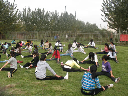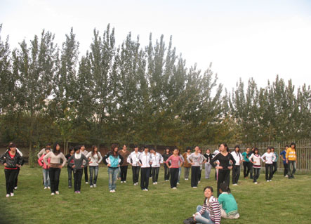 秋风已向我们昭示着夏去冬来,但是丝毫没有影响这一批强对健身的追求者,不到半个小时的时间,学员们个个大汗淋漓,但是他们的脸上却洋溢着幸福的微笑。此时口号声、笑声、赞叹声交织在一起,给海棠美丽的晴空划上了一道亮丽的风景线。