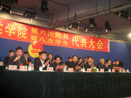 大会第三项由学院党委办公室主任马敬涛宣读贺词。首先他对召开的此次会议给予高度的肯定,并提出共青团的发展应以科学发展观为主要指导思想,应积极进取,服务学生,立足本职工作。内塑素质,外塑形型,提高我们新一代海棠人的精神面貌,为民族的发展和振兴贡献一份力量。