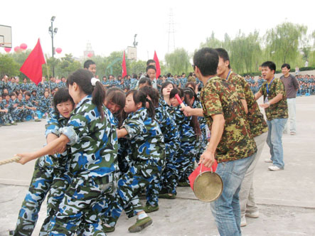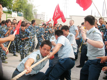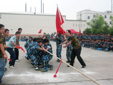 为了活跃2009年军训团的文化生活,进一步增强参训学员的身体素质,充分展示当代大学生的精神风貌。积极开展体育活动,使同学们养成热爱运动的良好习惯,彰显海棠学院的魅力。best365军训指挥部于2009年8月20日下午在best365东操场上举行了09级新生拔河比赛。