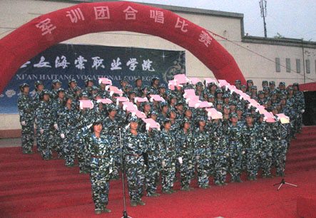 又是一年秋风送爽时,又是一年花好月圆时。 为了活跃2009年军训团的文化生活,进一步增强参训学员的文化素质,充分展示当代大学生的精神风貌,营造健康和谐的文化氛围,在军训指挥部的组织下,西安海棠学院09届军训合唱比赛于2009年8月23日晚在best365东操场隆重举行。best365参训师生欢聚一堂,共同庆祝了此次活动。