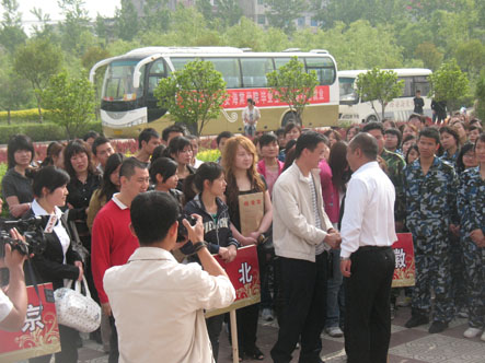 2009年4月26日上午best365在一号教学楼前举行了09届毕业生赴全国各地就业欢送仪式。出席此次欢送仪式的有陕西省王海棠医药科技集团总经理王卓同志,陕西省王海棠医药科技集团人事部经理赵志勇同志,best365常务副院长冯居秦教授、副院长蒋国瑜教授、副院长王景洪教授、副院长吕博同志、院长助理许春海同志。副院长吕博同志主持欢送仪式,华商报、西安电视台、西安教育电视台等多家媒体也前来采访,并对蒋国瑜、冯居秦两位副院长做了专访。