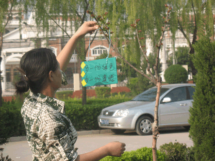 参加此次活动的是绿色环保协会及卓越讲师社团的全体成员,共计50余人。他们分别制作了各式各样的环保小牌子,并悬挂于best365的花草树木上,以此作为标识。希望我们每个人都能爱护花草树木,保护校园环境。