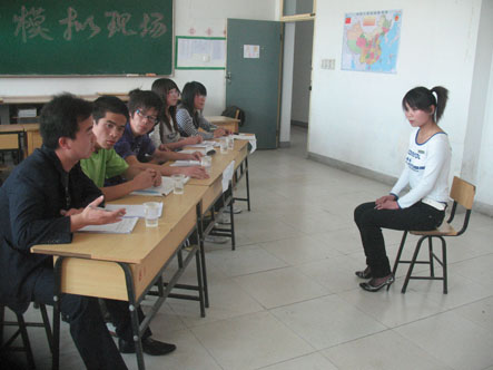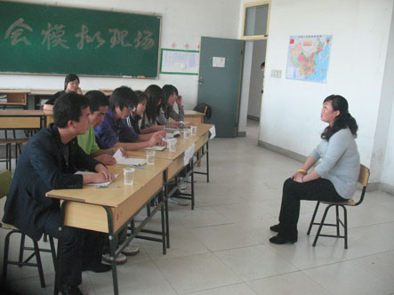 为了丰富大学生课余生活让同学们了解当前就业形势,西安海棠学院管理学院会展0802班班委于2009年4月16日下午2:00在本班教室举行了一次主题为“招聘会模拟现场”的活动。