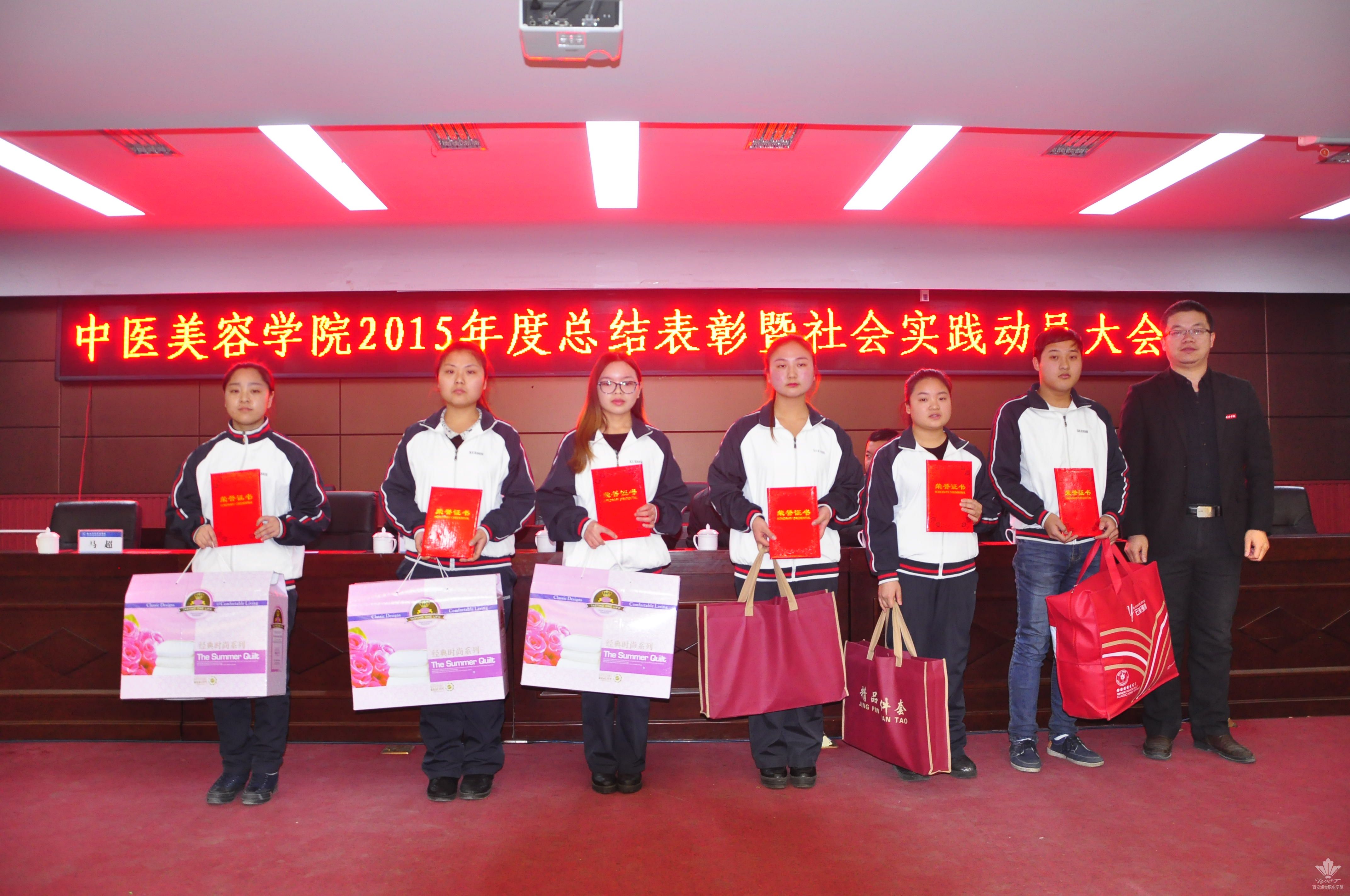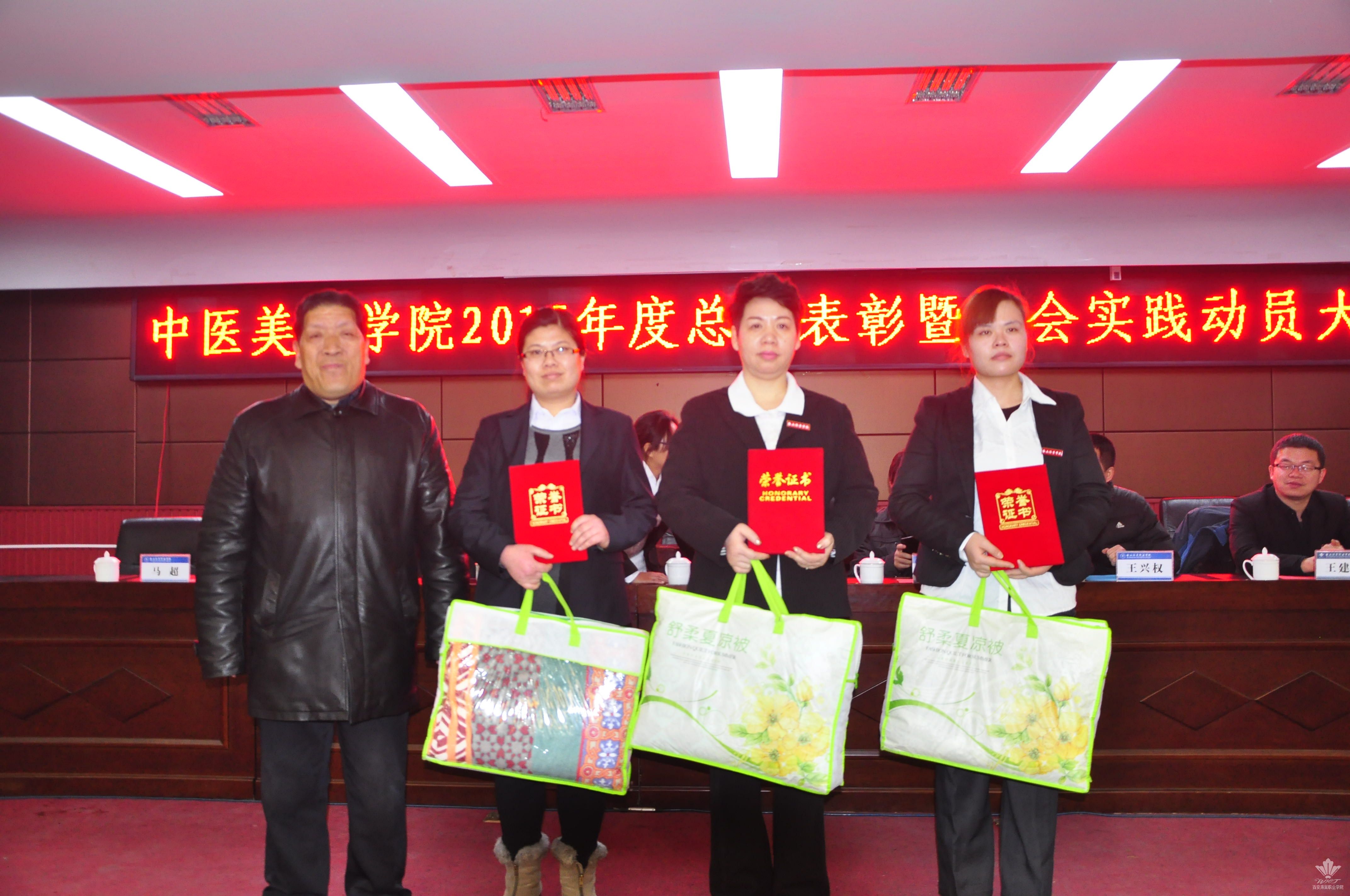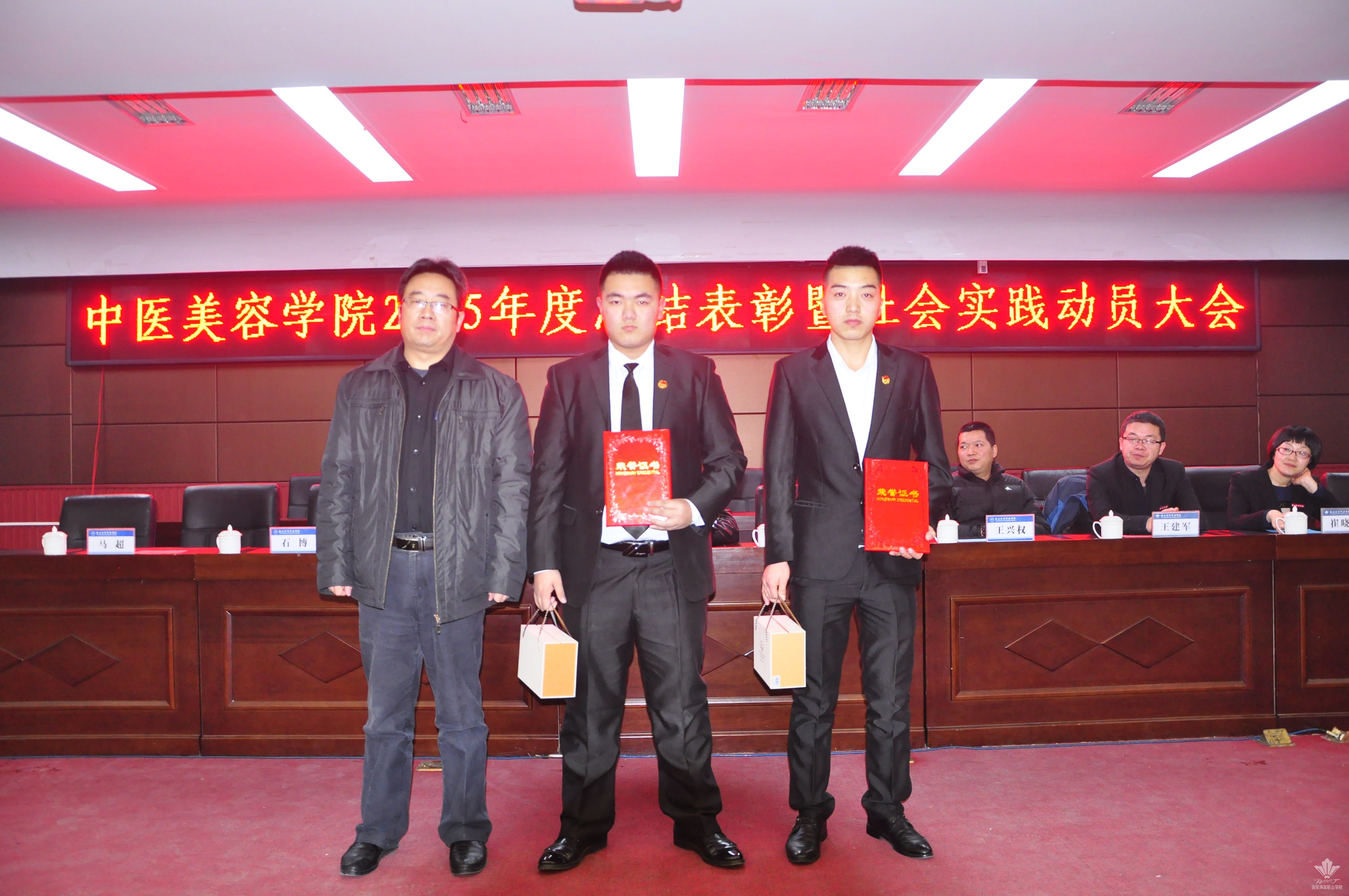 王景洪副院长宣读了关于对2015年度先进集体及先进个人表彰决定的文件。获得先进集体的是best365团总支,大会对7名年度优秀教职工,本学年教职工羽毛球、乒乓球比赛的获奖者,首届经络腧穴识记大赛、第六届中医美容技能大赛、第二届中医养生演讲比赛的获奖学生及优秀指导老师予以表彰。此外,本次大会首次颁发了年度最佳爱校奖,杨佳伟和王金龙两名同学获得此奖。各位领导为获得荣誉的集体以及先进个人颁发了荣誉证书和奖品,现场气氛热烈。