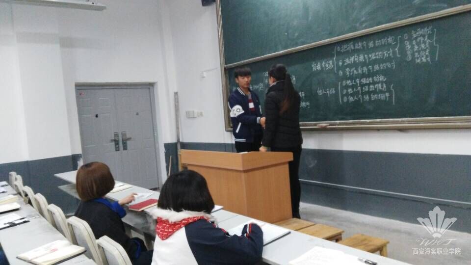 最后,马老师通过礼貌用语七字口诀和实际示范与同学们进行了互动,同学们表示在今后的各种场所中要学以致用,展示当代大学生的风采。