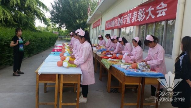 为提高培训部育婴师专业学生的师资技能和专业水准,西安海棠职业技能鉴定中心培训部于5月13日下午15:30举办了育婴师实操技能展示比赛,