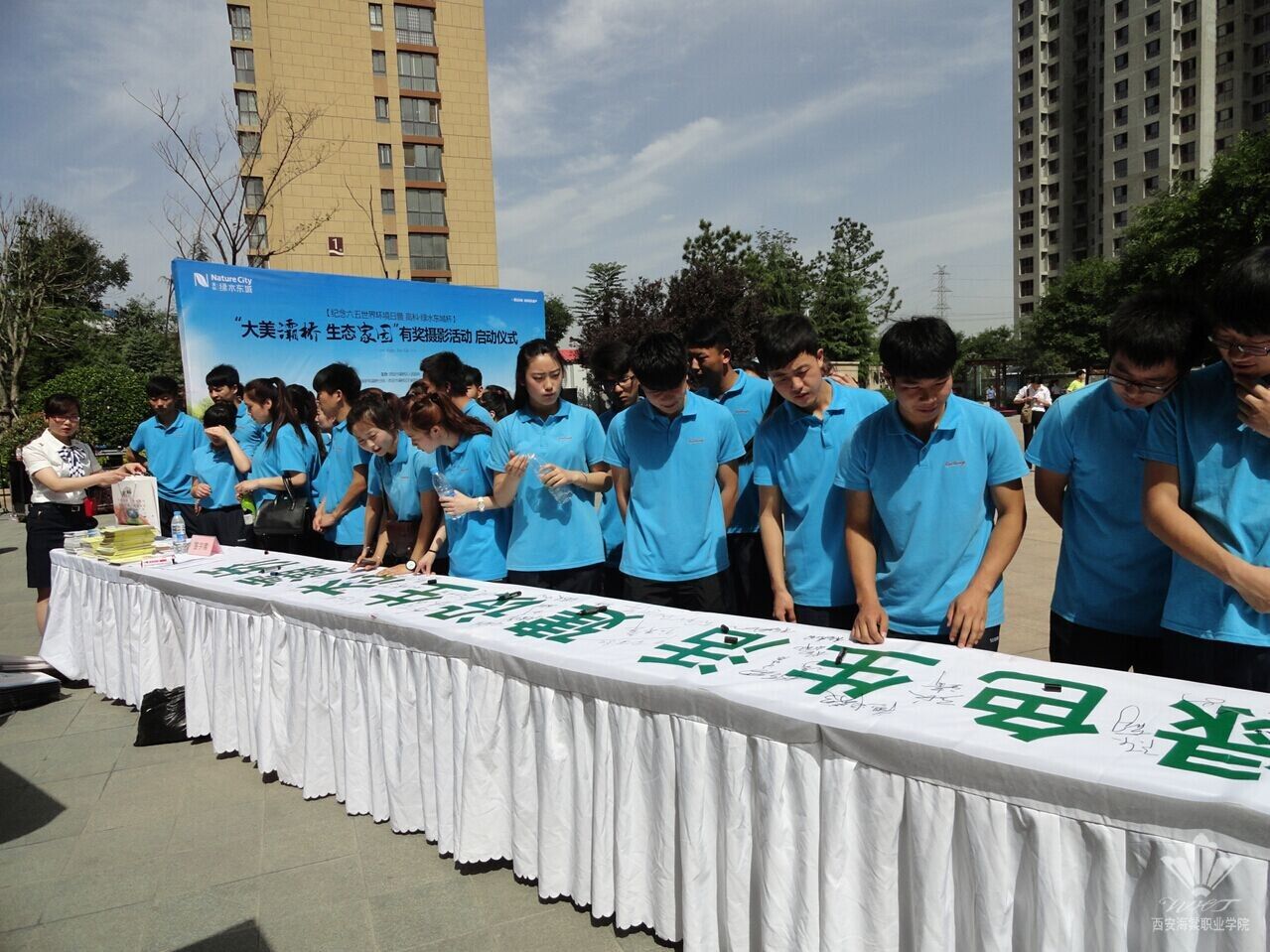 6月5日上午,西安海棠学院30名学生干部在团委书记石博的带领下,参加了灞桥区纪念六五世界环境日暨高科绿水杯“大美灞桥,生态家园”有奖摄影活动启动仪式。