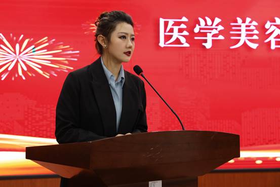 大会第三项:医学美容系学生科科长童宁宣读《医学美容系2022年度先进个人的表彰决定》