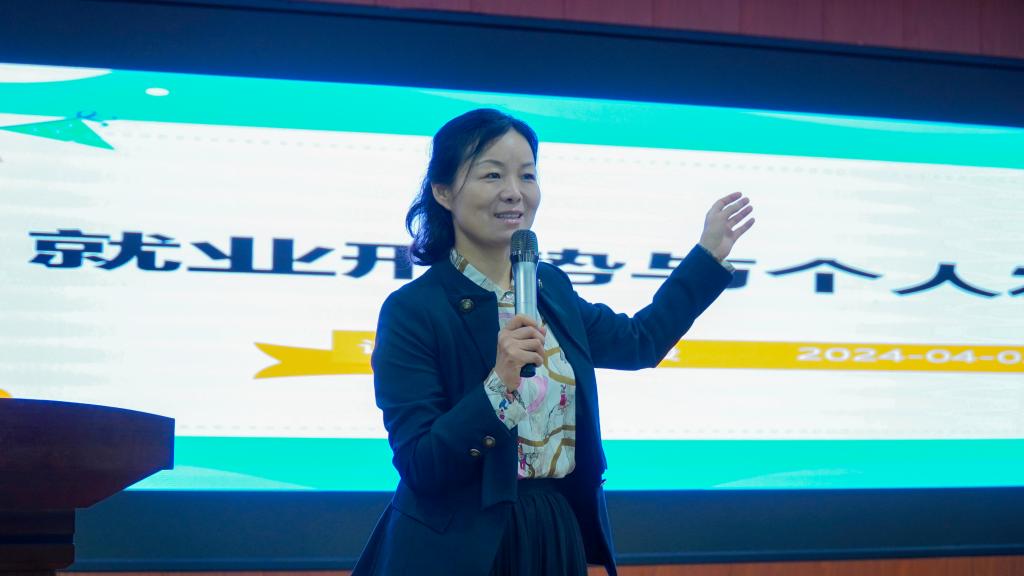 讲座特邀业界知名职业规划导师朱彩毅亲临现场,她凭借丰富的职场经验和深厚的理论功底,为到场的大学生们生动解析了当前就业市场的趋势和前景,详细解读了职业规划的重要性和实施策略。