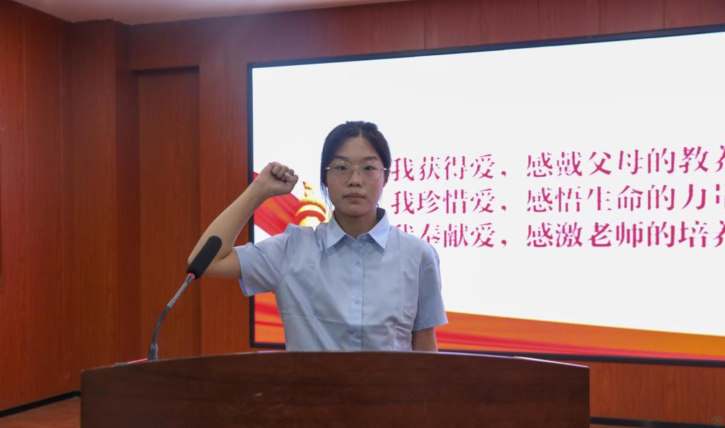 其次,由来自中药2402班的心理委员代表裴鑫同学,带领全体学生庄严宣誓,承诺善爱自己,善爱生命,舞动生命精彩,成就人生理想。同学们铿锵有力的誓言鼓舞了自己,也鼓舞了在场每一位师生。