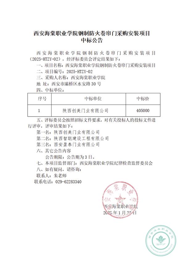 best365中国官方网站钢制防火卷帘门采购安装项目中标公告